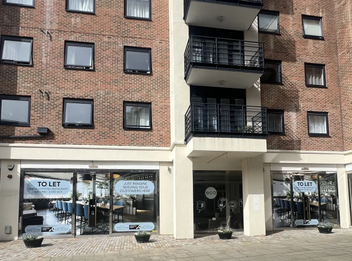 The premises occupy a prominent position in Charter Quay close to the town centre and nearby offices. The unit comes with a partially fitted kitchen along with excellent outdoor seating.